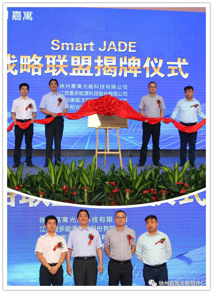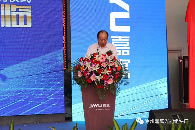 6月29日,徐州嘉寓光能開幕投產(chǎn)暨戰(zhàn)略簽約儀式隆重舉行。中國光伏行業(yè)協(xié)會(huì)秘書長(zhǎng)王勃華、沛縣常務(wù)副縣長(zhǎng)吳以貴、國家發(fā)改委能源研究所王斯成教授、國家光電建筑應(yīng)用委員會(huì)主任梁岳峰、沛縣縣委常委/開發(fā)區(qū)黨工委書記于帆、嘉寓集團(tuán)董事長(zhǎng)田家玉、嘉寓股份副董事長(zhǎng)/執(zhí)行總裁陳其澤、嘉寓股份董事張初虎等領(lǐng)導(dǎo)及嘉賓出席投產(chǎn)儀式。