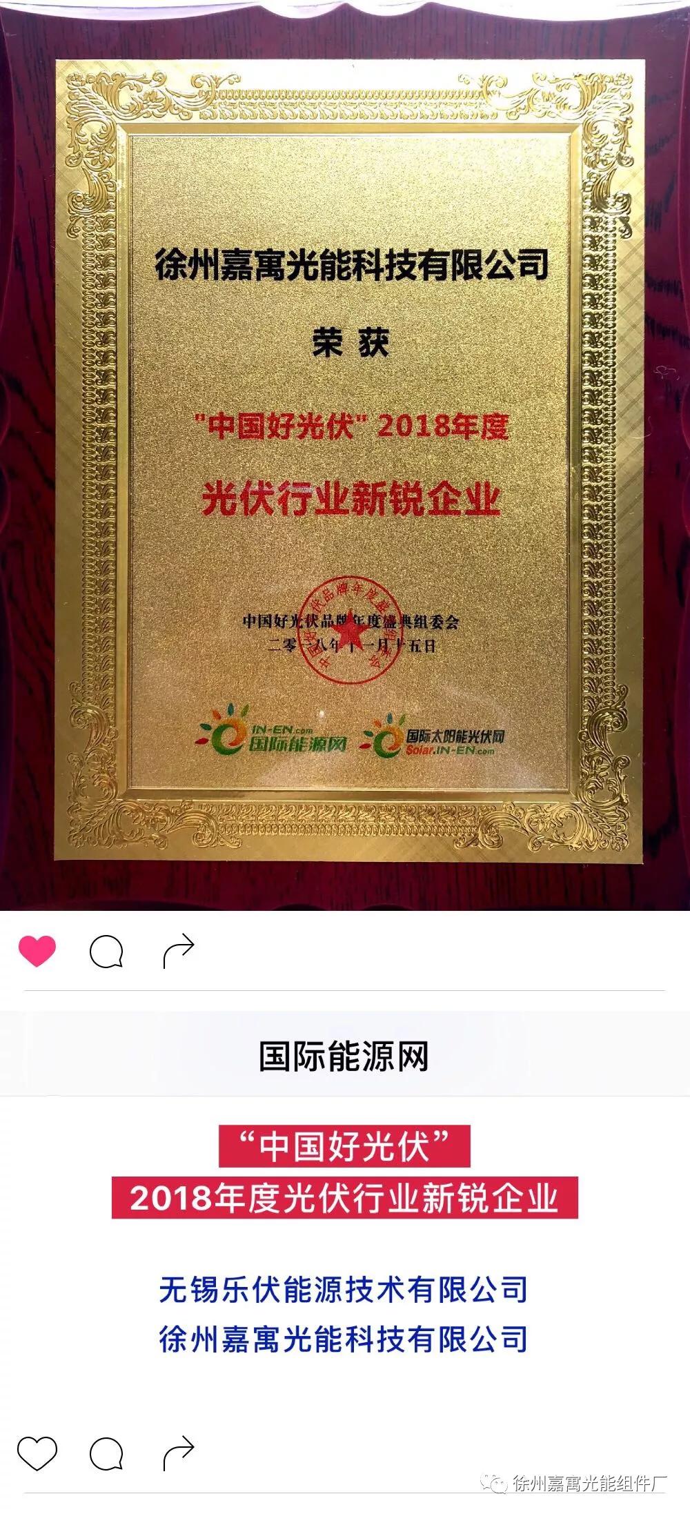 嘉寓光能在中國好光伏評選中再度斬獲光伏組件十大供應商以及年度新銳企業(yè)