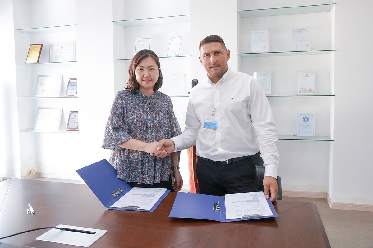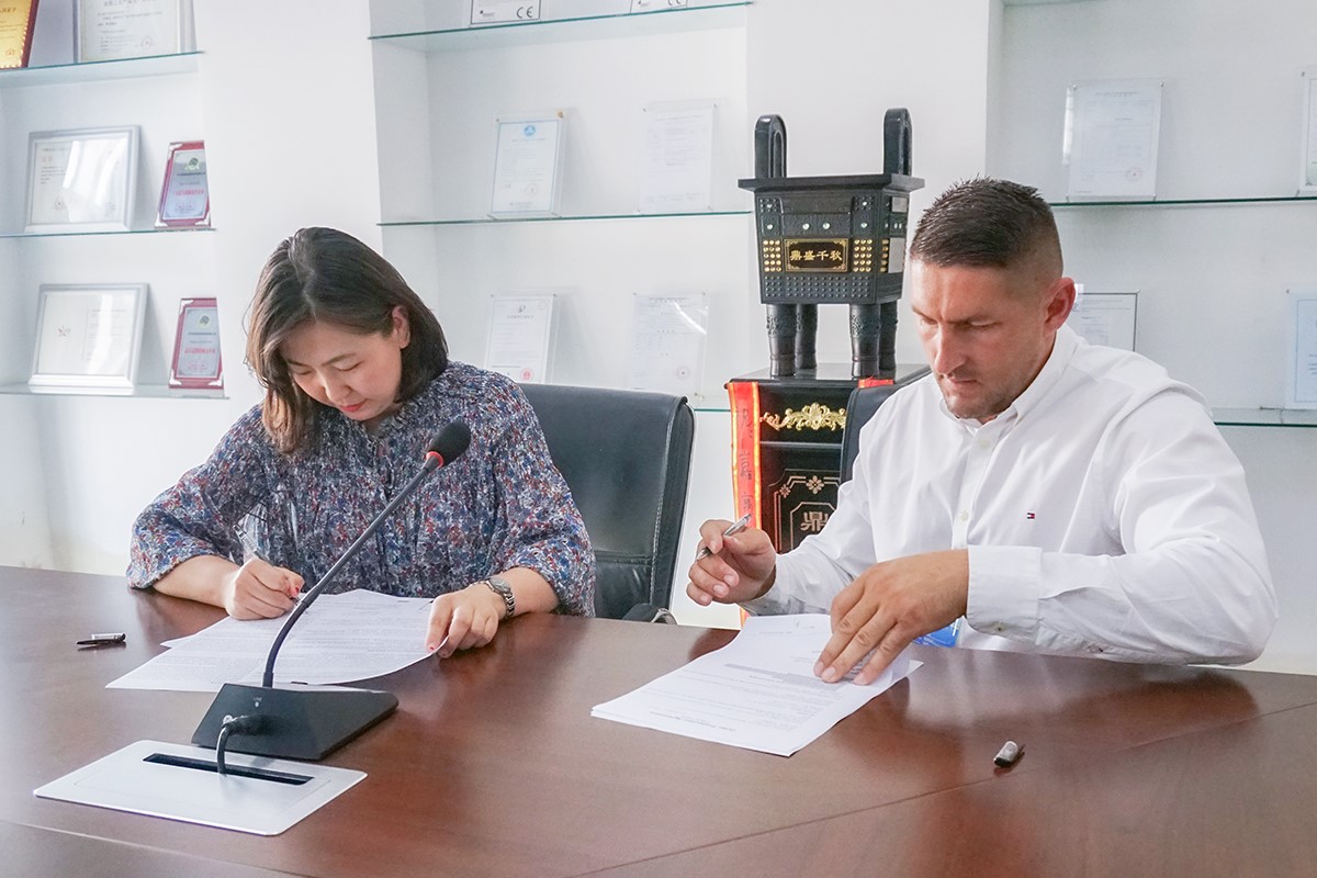 嘉寓光能業(yè)務(wù)副總?cè)椒迮c波蘭客戶簽約現(xiàn)場(chǎng)