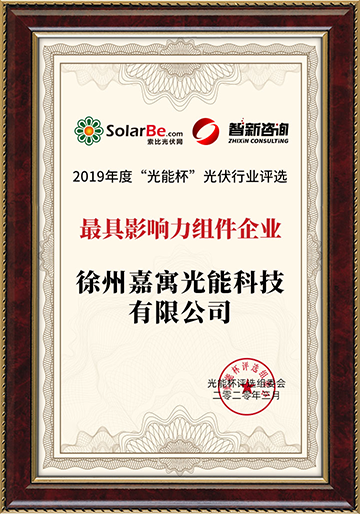3月31日下午,由索比光伏網(wǎng)主辦的2019年度“光能杯”評選活動暨光伏行業(yè)首個直播頒獎典禮成功舉辦,此次線上直播受到了行業(yè)內(nèi)外的高度關(guān)注,徐州嘉寓光能科技有限公司在200多家報名企業(yè)中憑借強大創(chuàng)新力、出色的品質(zhì)與服務(wù)、卓越的品牌影響力,擷取了光伏行業(yè)評選"2019年度最具影響力組件企業(yè)"大獎。